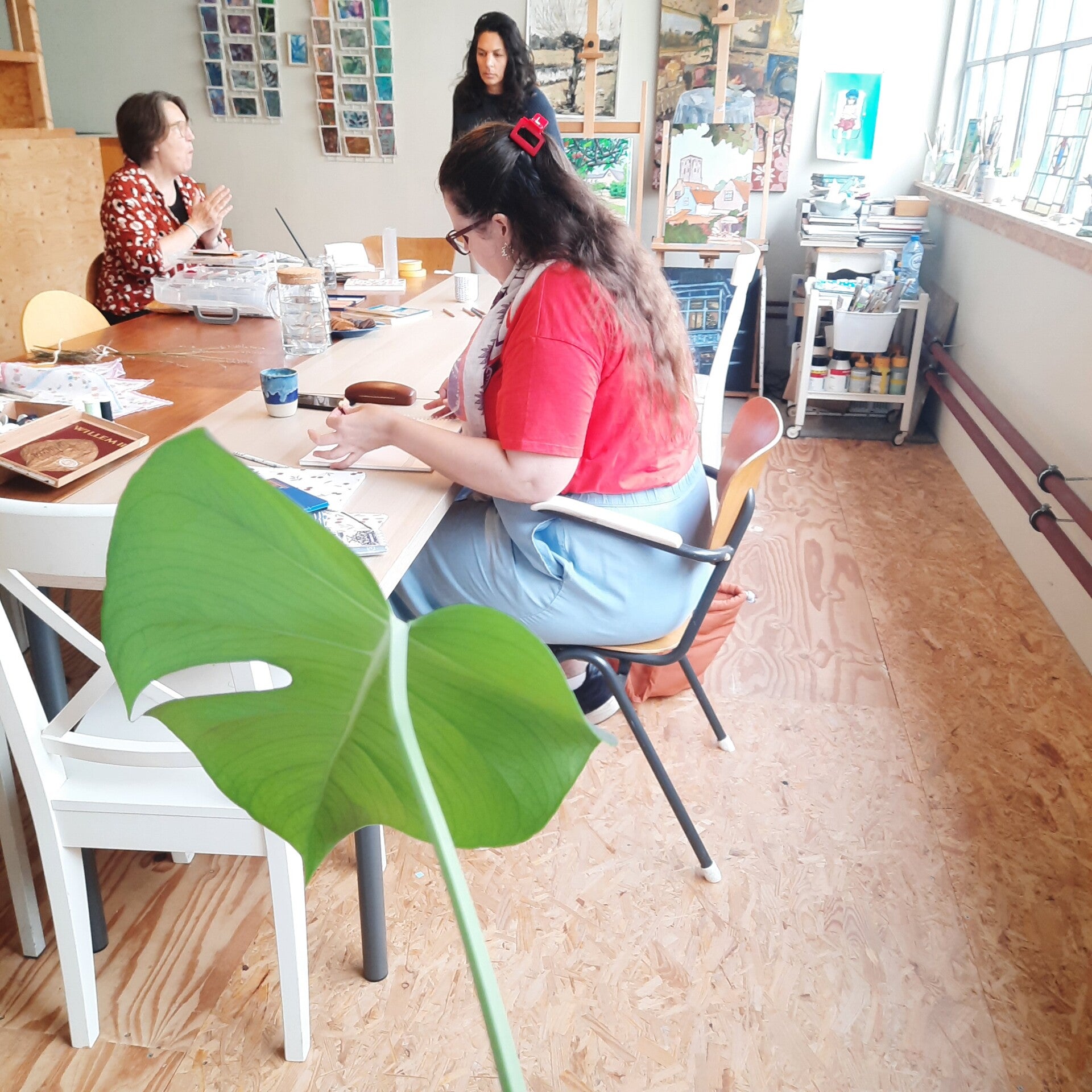 Open Atelier is een keer per maand, wisselend op zaterdag en zondag. De ruimte is bereikbaar via een trap.