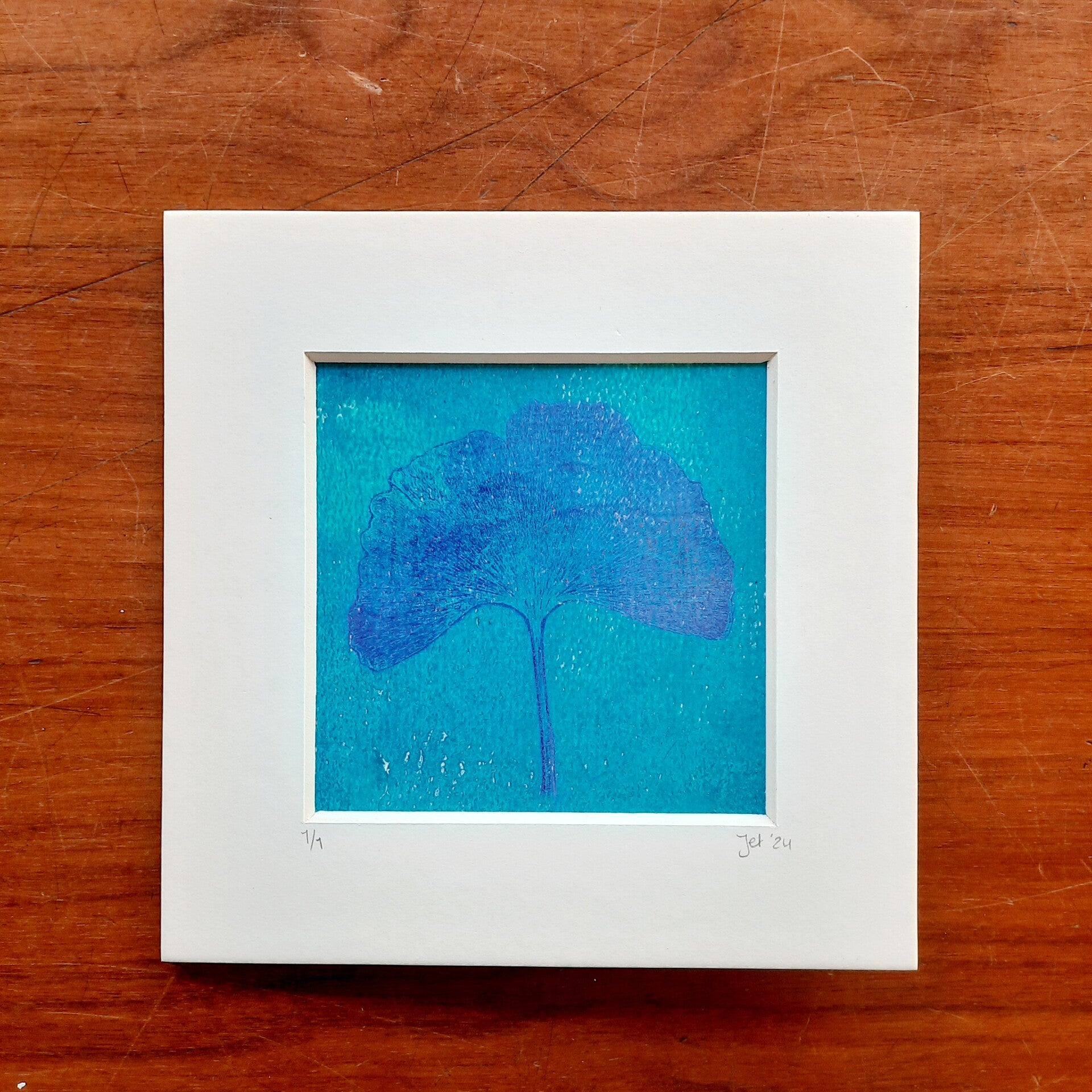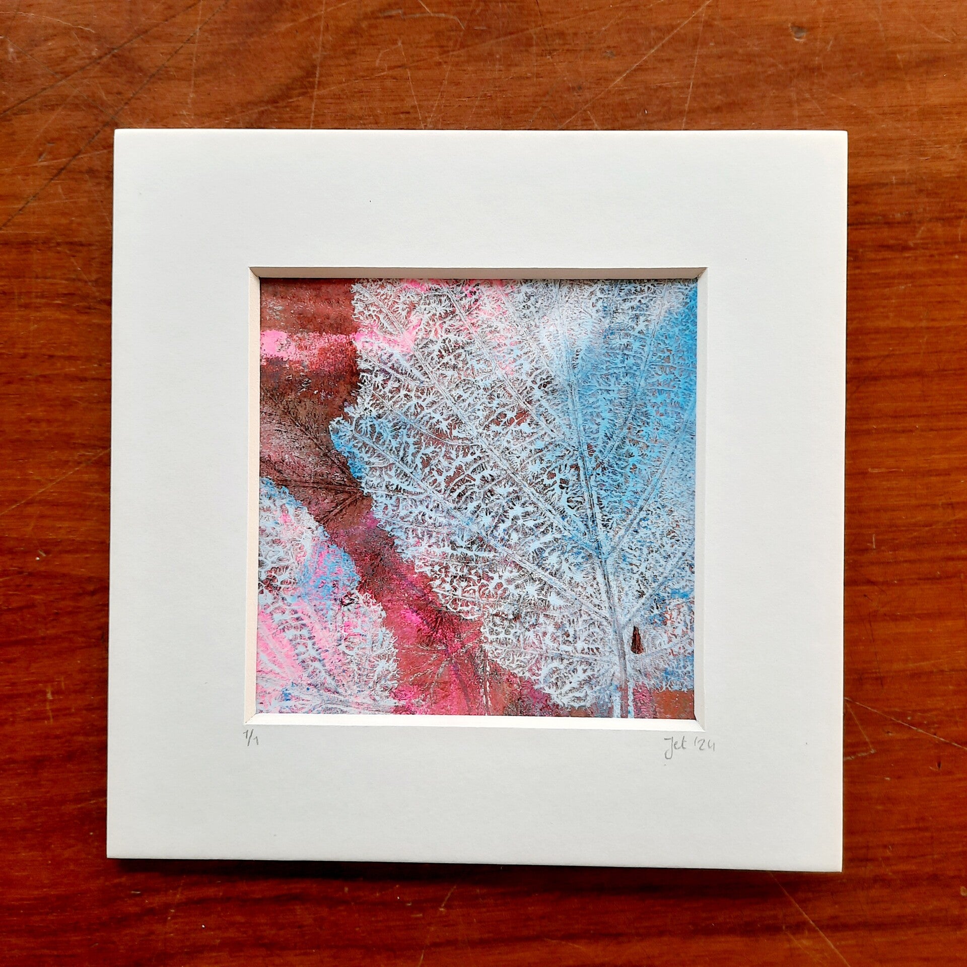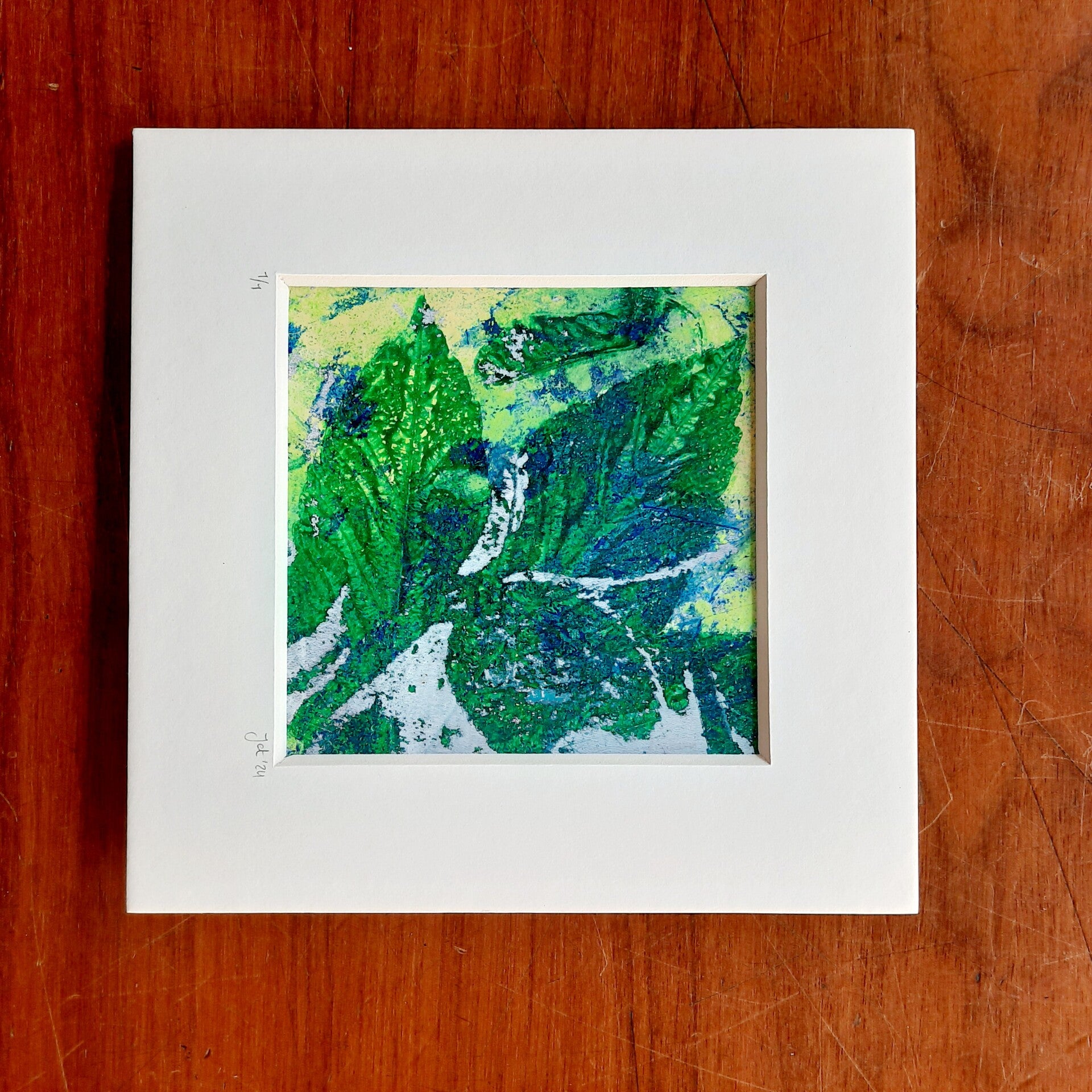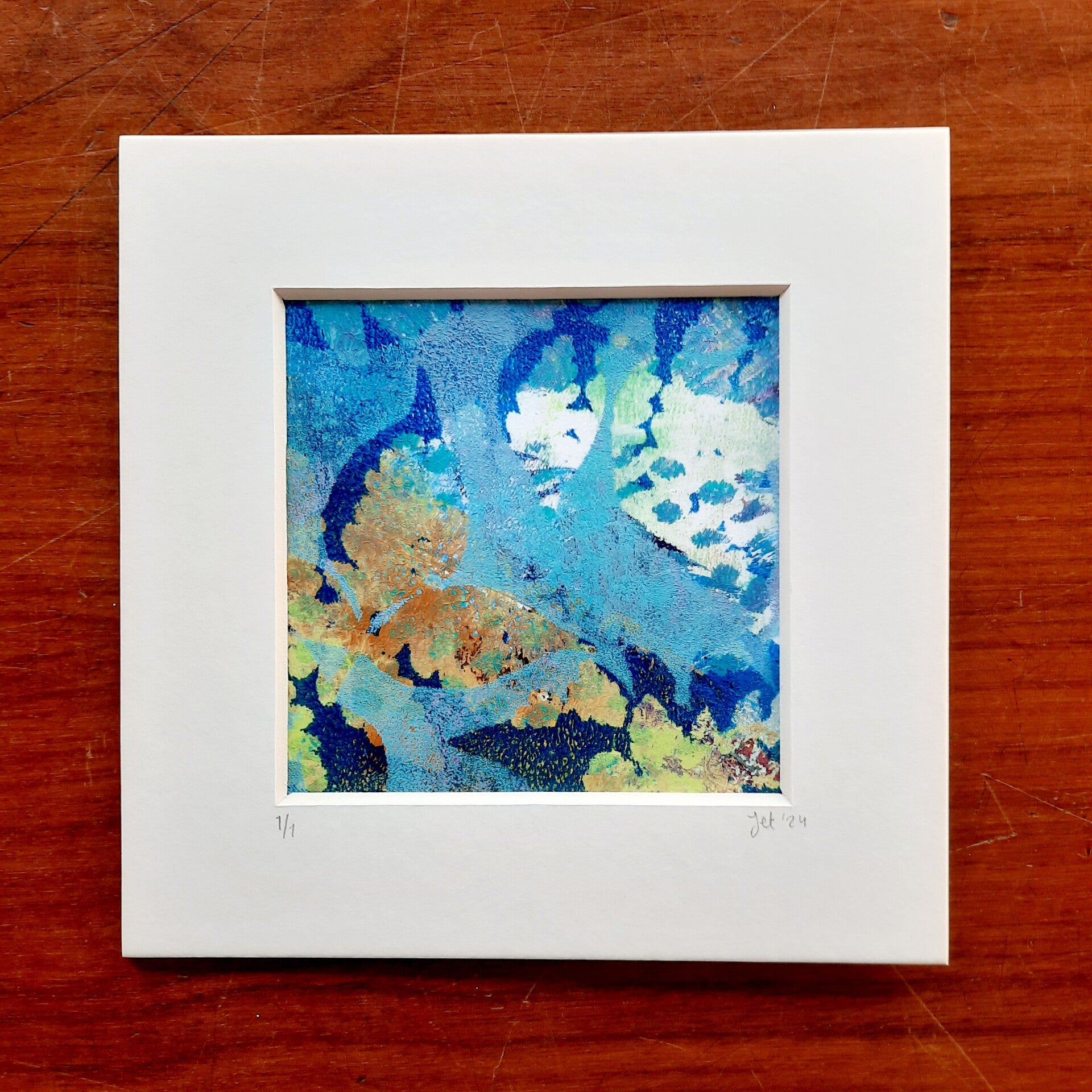 Een mooie kleurijke print waar er echt maar één van is. Omlijst met een offwhite passe-partout. Om op te hangen of neer te zetten.